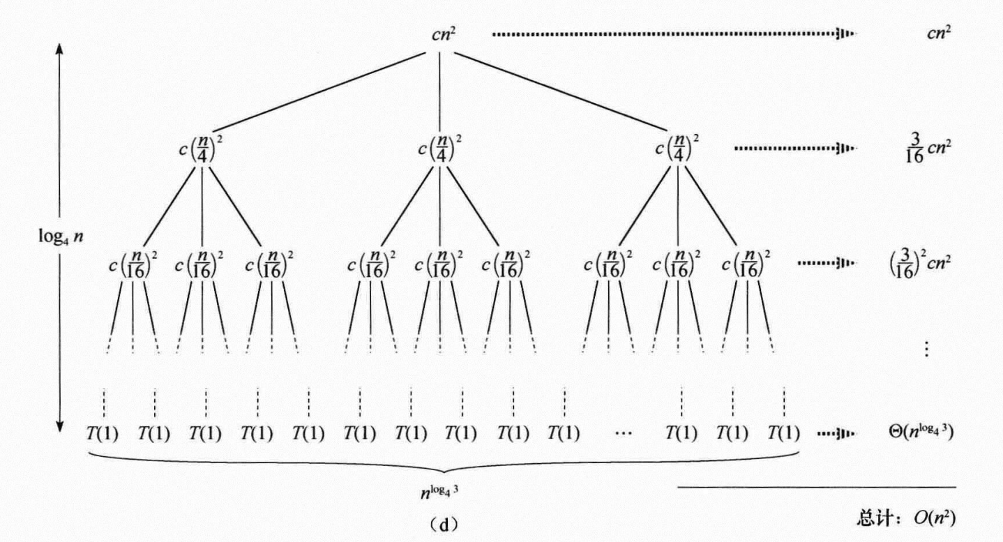 根节点复杂度为cn^2\implies T(n)=\Omega(n^2)\implies T(n)=\Theta(n^2)
