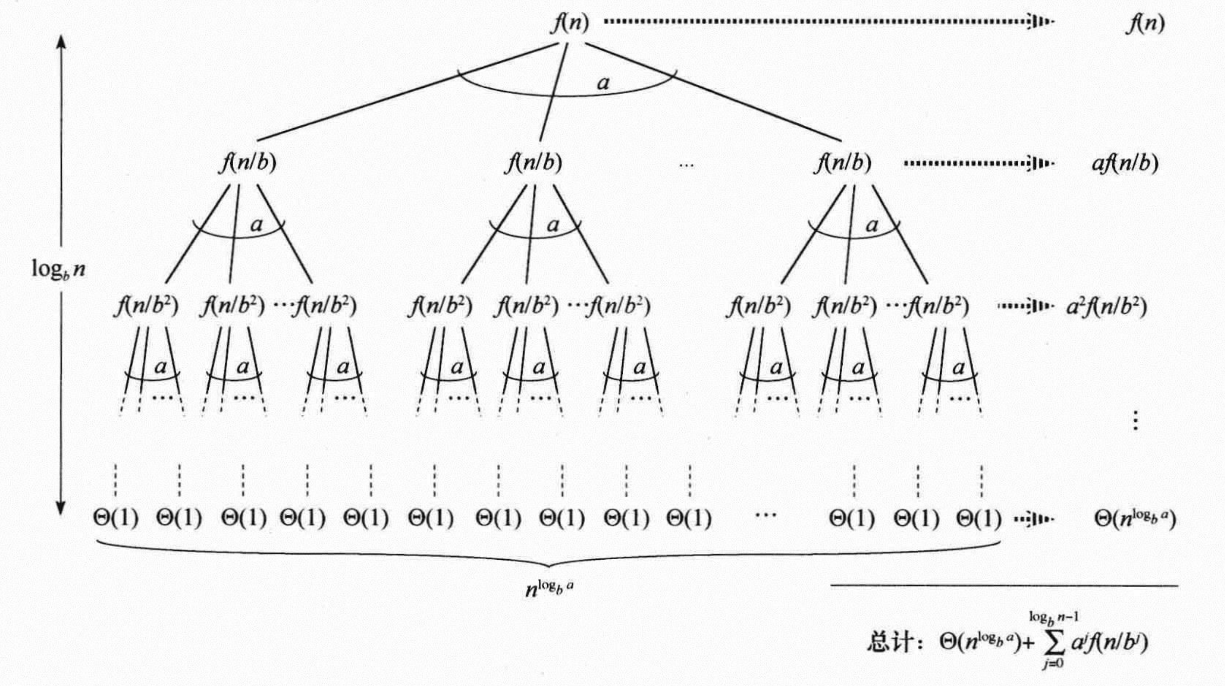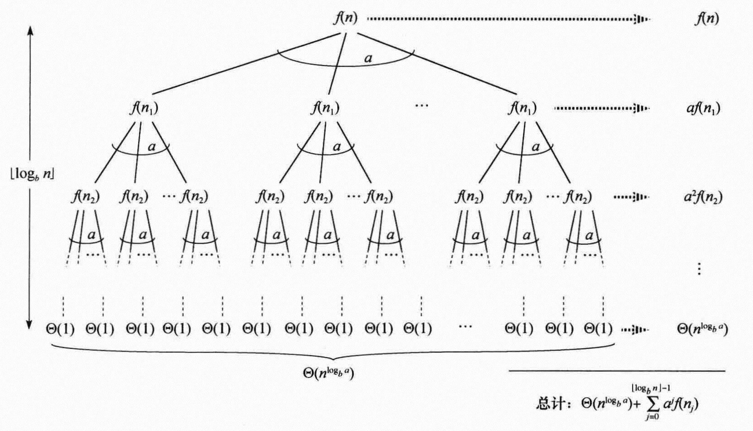 (2)各层均分布: f(n)=\Theta(n^{\log_ba})\overset{(2)}\implies f(n_i)=\Theta(\frac{n}{b^i}^{\log_ba})